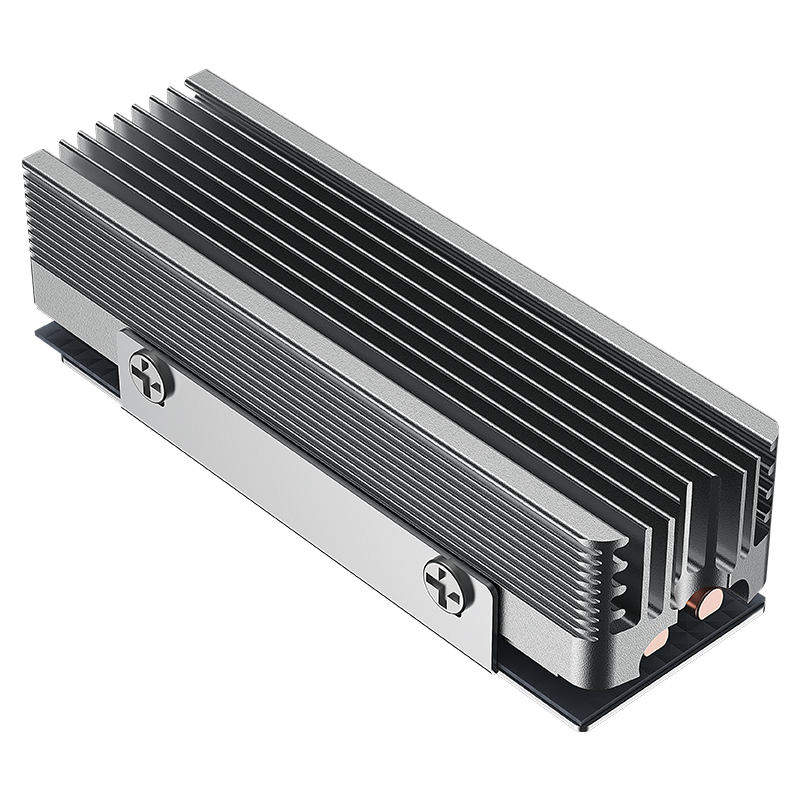 Радиатор выполнен из алюминия с интегрированными медными трубками, обеспечивая сочетание лёгкости, прочности и высокой теплопроводности — всё для того, чтобы SSD не перегревался и сохранял скорость даже под максимальной нагрузкой.