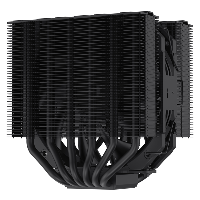 Компактный двухбашенный кулер с внутренним вентилятором и продуманной системой охлаждения для эффективной работы в корпусах с ограничением по высоте до 135 мм. В основе конструкции — две башни радиатора и шесть тепловых трубок диаметром 6 мм, выполненных по технологии антигравитационной оптимизации второго поколения. Эти трубки специально адаптированы к вертикальному расположению и обеспечивают стабильную теплопередачу независимо от положения корпуса. Заявленная эффективность — до 225 Вт TDP, что делает кулер подходящим даже для высоконагруженных современных процессоров.