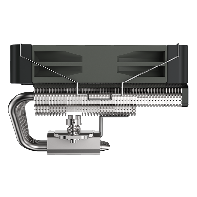 Как и в стандартной версии, радиатор собран из 0.4 мм алюминиевых ребер с гальваническим покрытием, что улучшает теплопередачу и устойчивость к окислению. контактная пластина с фронтальной затяжкой упрощает монтаж даже новичкам, обеспечивая плотное и равномерное прилегание. Конструкция кулера дополнительно усилена нержавеющей стальной рамой, предотвращающей деформацию радиатора со временем и повышающей его механическую стабильность.