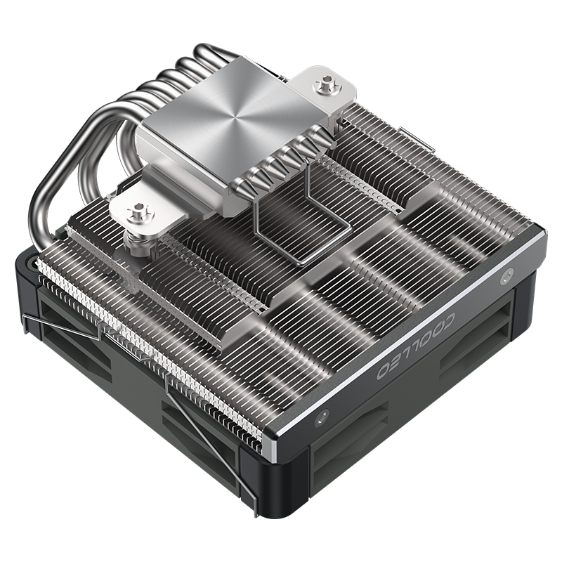 С общей высотой 77 мм, модель остаётся в категории низкопрофильных решений, но выигрывает в производительности за счёт увеличенного объёма воздушного потока и улучшенного вентилятора. Кулер построен на базе шести тепловых трубок по 6 мм, припаянных к радиатору по технологии полнофлюсной пайки, с медным никелированным основанием, которое точно повторяет поверхность процессора благодаря микровыпуклой шлифовке. Эффективность рассеивания достигает до 210 Вт TDP, что делает кулер подходящим даже для мощных CPU в компактных корпусах.