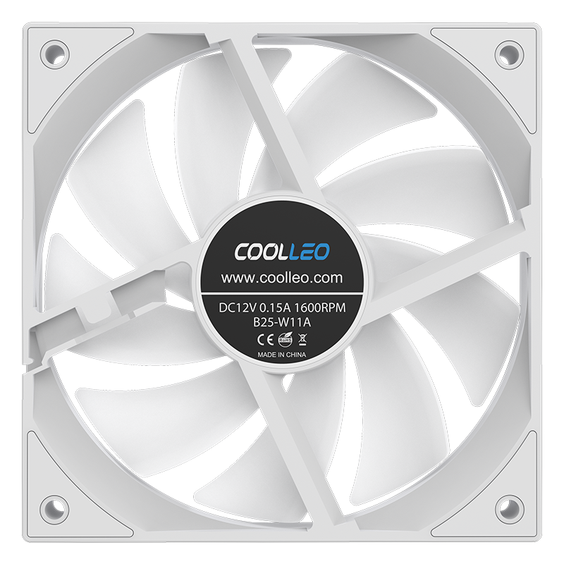 Coolleo B25 White — это 120-мм корпусный вентилятор с адресной RGB-подсветкой и поддержкой ШИМ-управления, идеально подходящий для создания мощного и в то же время тихого воздушного потока в корпусе вашего ПК.