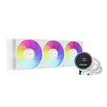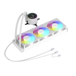 Радиатор версии 360 мм изготовлен из алюминия и имеет габариты 397×120×27 мм, соединяется с блоком с помощью прочных шлангов из EPDM + IIR длиной 400 мм, устойчивых к изгибу и износу. Установленные вентиляторы B25 размером 120×120×25 мм создают воздушный поток до 72.5 CFM при давлении 2.05 мм H₂O, а шум не превышает 30 дБ(A). Вентиляторы оснащены 4-pin PWM управлением и 5V ARGB-подсветкой, синхронизируемой с материнской платой, а их конструкция и прокладки обеспечивают стабильную работу с минимальной вибрацией.