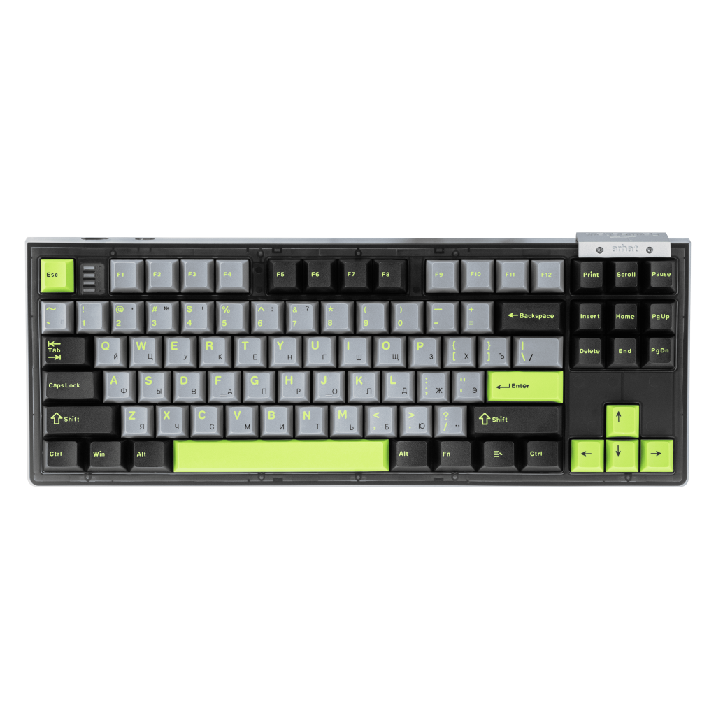 В модель установлены линейные переключатели HUANO Matcha Latte , рассчитанные на 50 миллионов срабатываний. Кейкапы выполнены из высококачественного PBT-пластика методом пятисторонней сублимации, что обеспечивает износостойкость и сохранение легенд при длительной эксплуатации. Кириллический текст нанесён с использованием гравировки.