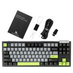 Компактное и надёжное решение в форм-факторе TKL (87 клавиш), сочетающее эргономику, функциональность и высокие технические характеристики. Модель поддерживает три режима подключения: проводной (USB Type-C), беспроводной 2.4 ГГц и Bluetooth 5.0, что обеспечивает совместимость с широким спектром устройств и стабильную работу в любых сценариях.