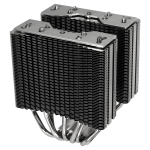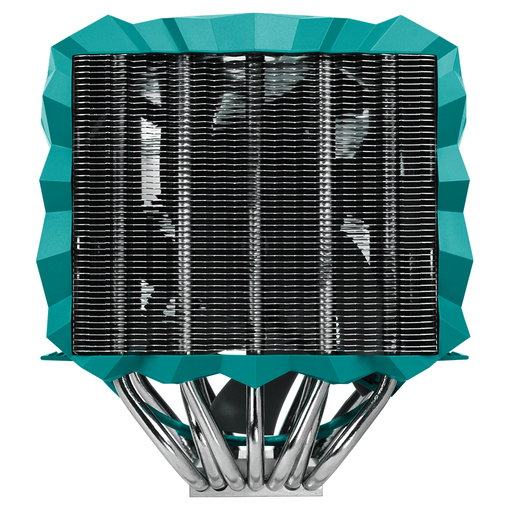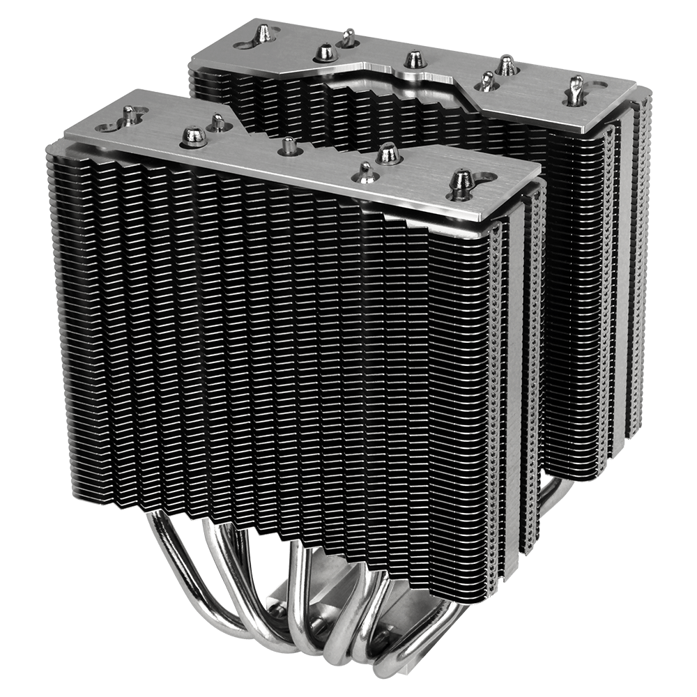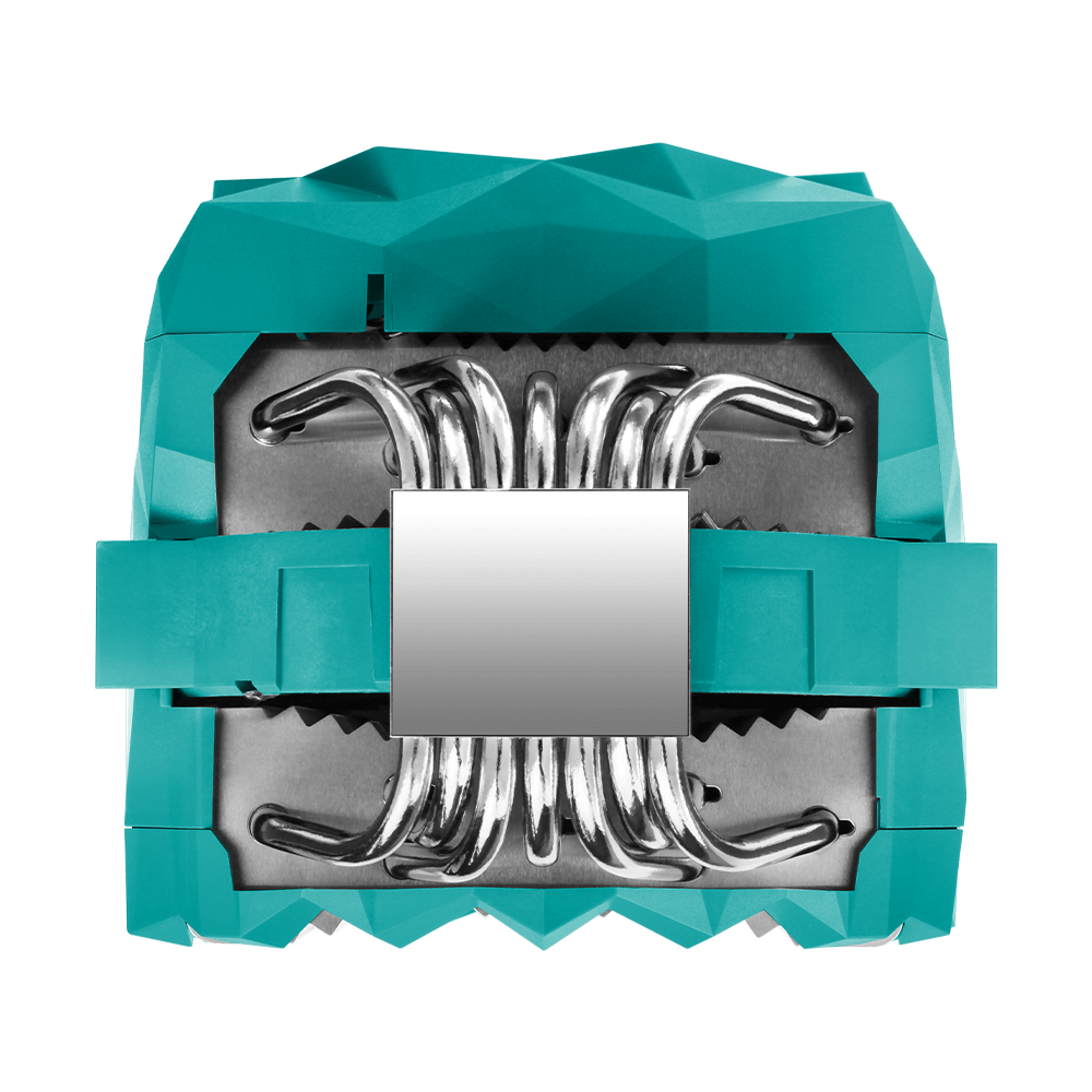 В основе конструкции — два радиатора и медное никелированное основание для равномерного отвода тепла. Семь медных тепловых трубок диаметром 6 мм расположены симметрично и обеспечивают оптимальную теплопередачу. Метод полного пропаивания пластин увеличивает прочность и повышает эффективность охлаждения. Воздушный зазор 2 мм между ребрами поддерживает баланс между потоком воздуха и площадью теплообмена.