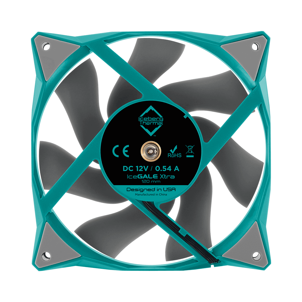 Диапазон скорости от 500 до 3000 об/мин позволяет гибко регулировать работу вентилятора в зависимости от нагрузки. На максимальной скорости вращения IceGALE XTRA выдаёт до 127 CFM воздушного потока при давлении 4,6 мм H₂O — первоклассный результат для продува радиаторов СЖО, башен воздушного охлаждения или корпуса.