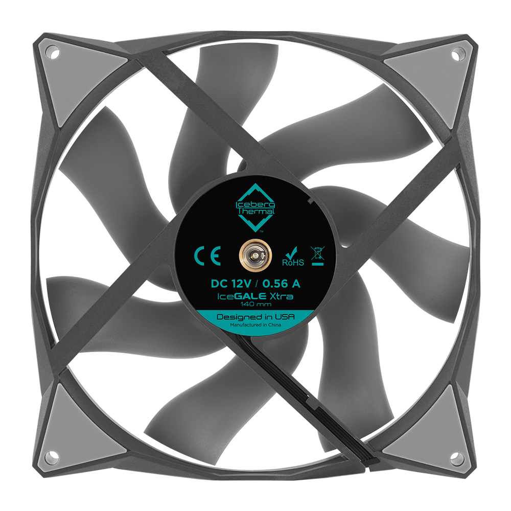 Размер вентилятора составляет 140×140×25 мм, подключение осуществляется через 4-pin PWM. Рабочее напряжение – 12 В, потребляемый ток – 0,56 А, уровень шума в диапазоне от 0 до 47 дБА. В комплект входит вентилятор IceGALE® Xtra 140 mm и четыре винта для крепления.