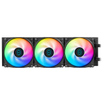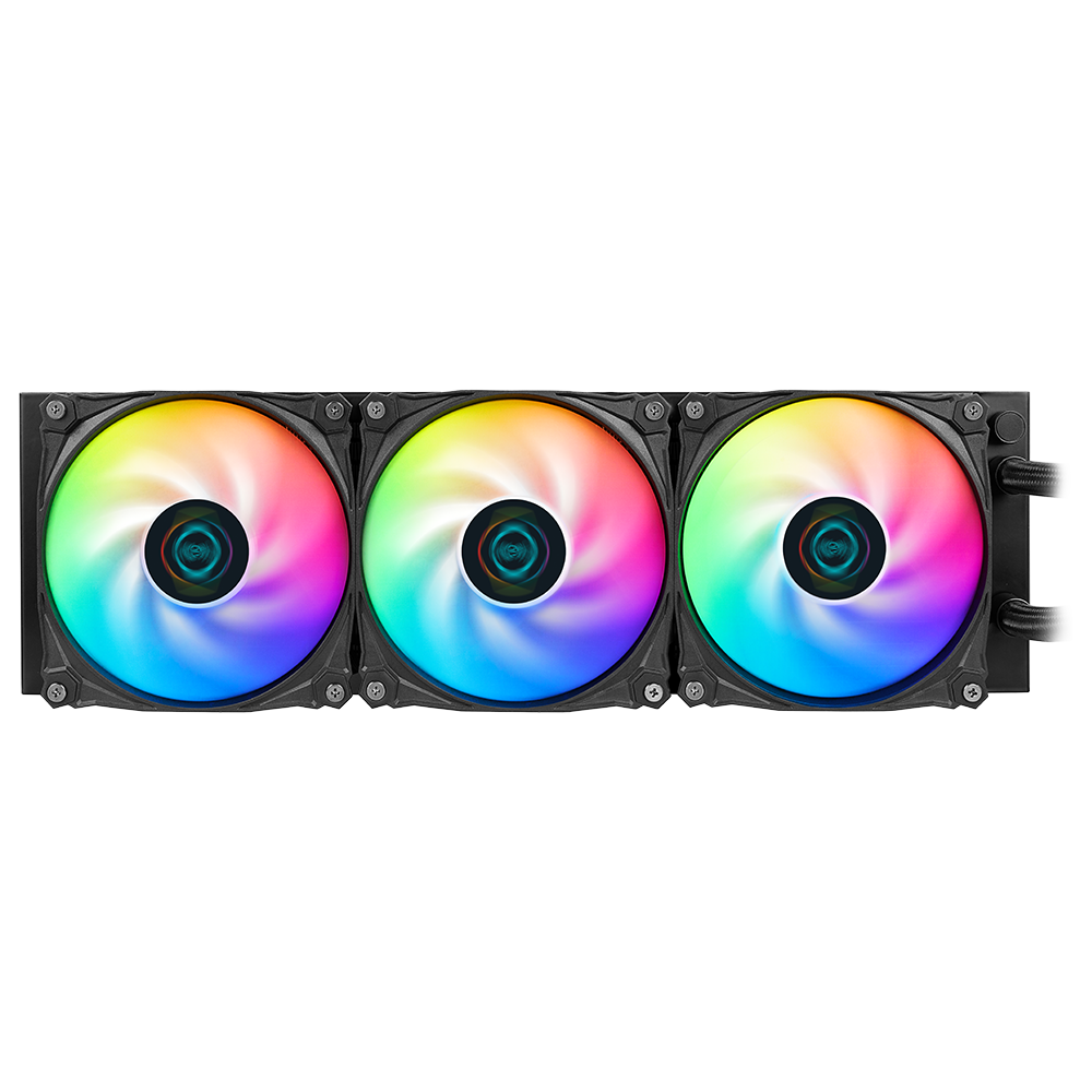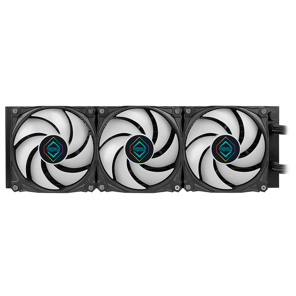Высокоэффективная система жидкостного охлаждения, разработанная для современных высокопроизводительных процессоров. Оснащённая радиатором длиной 397 мм и тремя 120-мм вентиляторами IceGALE Lightning ARGB Gen 2, она обеспечивает оптимальный баланс между мощным охлаждением и минимальным уровнем шума. Диапазон скорости вентиляторов составляет 200–2200 об/мин, максимальный воздушный поток достигает 76,74 CFM при статическом давлении 2,8 мм H₂O, а уровень шума не превышает 28,9 дБА. Гидродинамический подшипник гарантирует долговечную, тихую и стабильную работу.