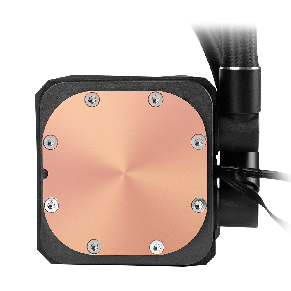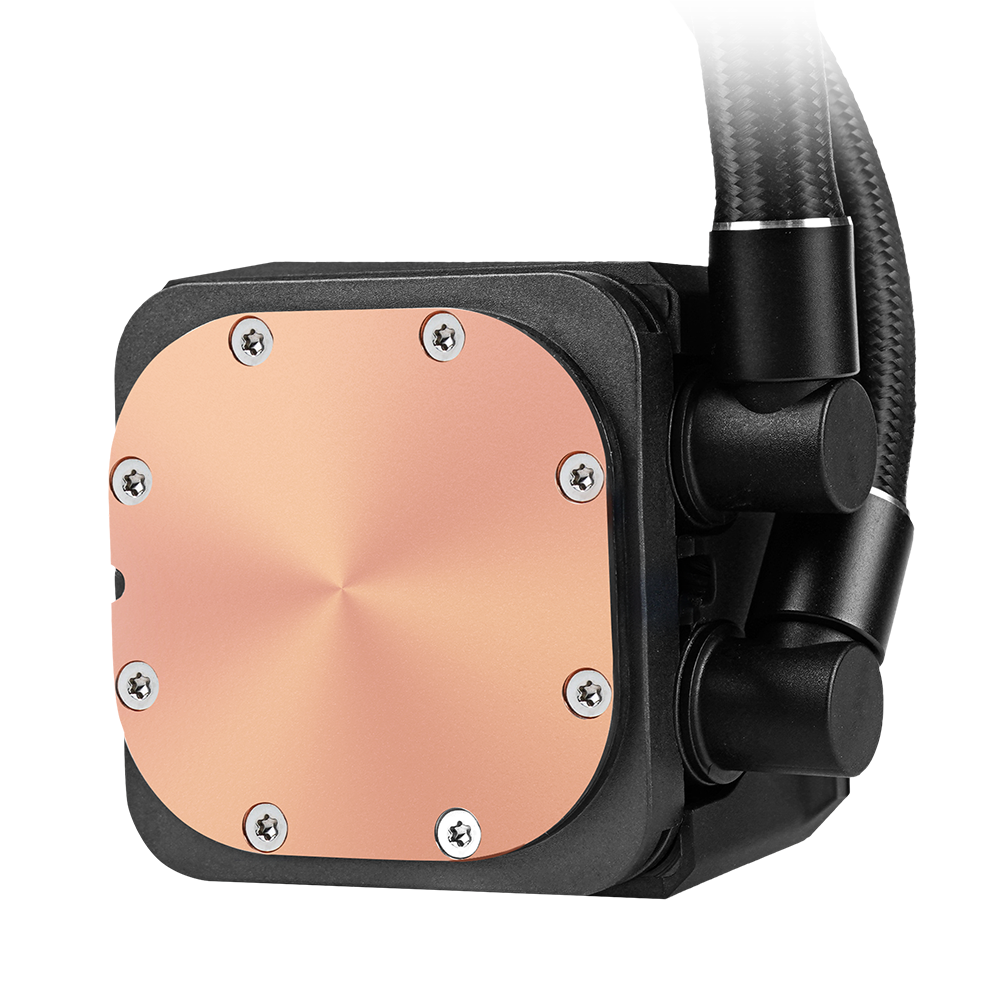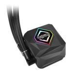 Центральным элементом системы является водоблок с медной контактной пластиной и микроканальной структурой, обеспечивающей максимальную теплопередачу. Встроенная помпа с частотой вращения 3100 об/мин и уровнем шума всего 20 дБА рассчитан на срок службы более 100 000 часов. Благодаря возможности поворота крышки помпы на 360° достигается идеальное позиционирование логотипа в любой ориентации установки.